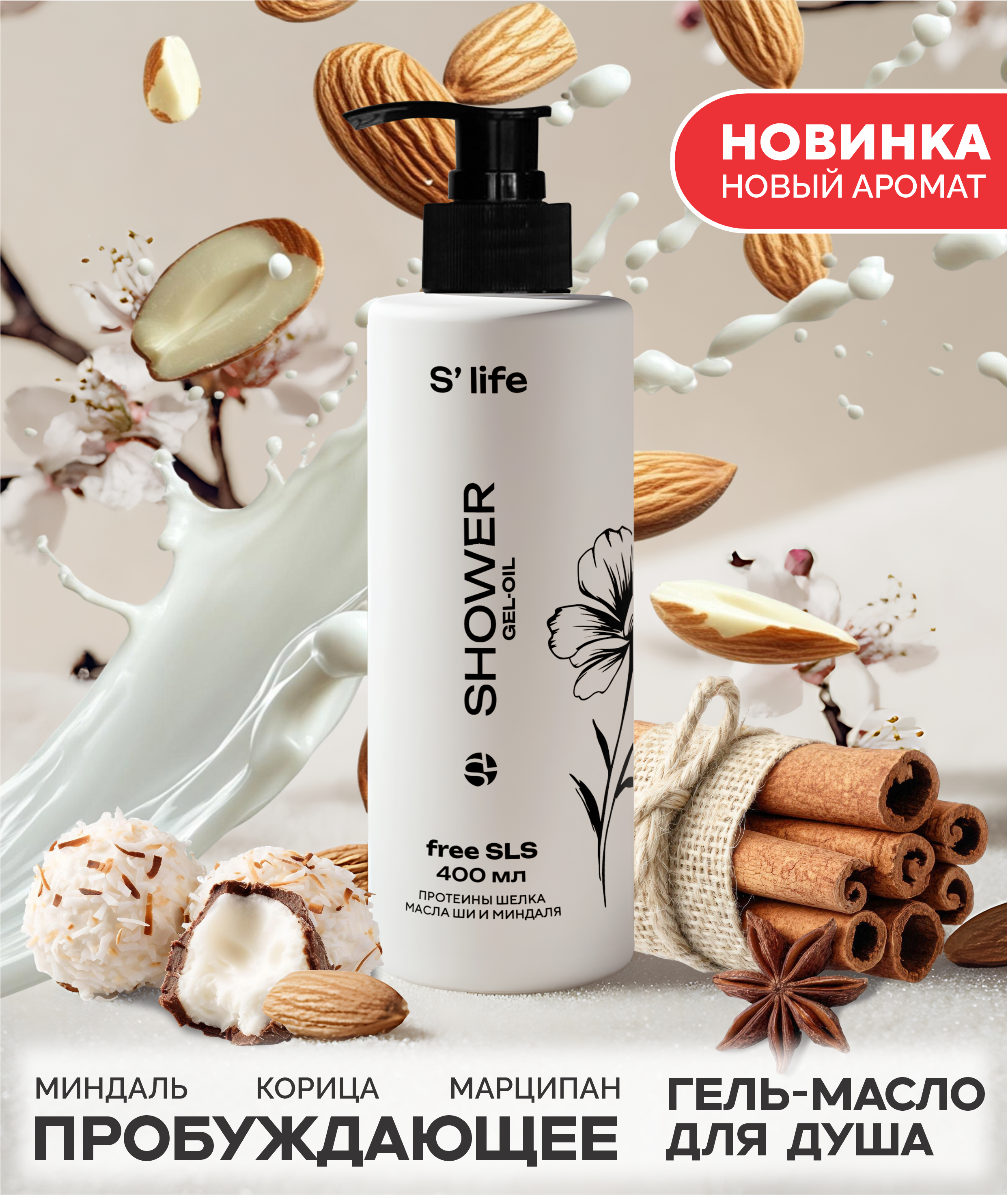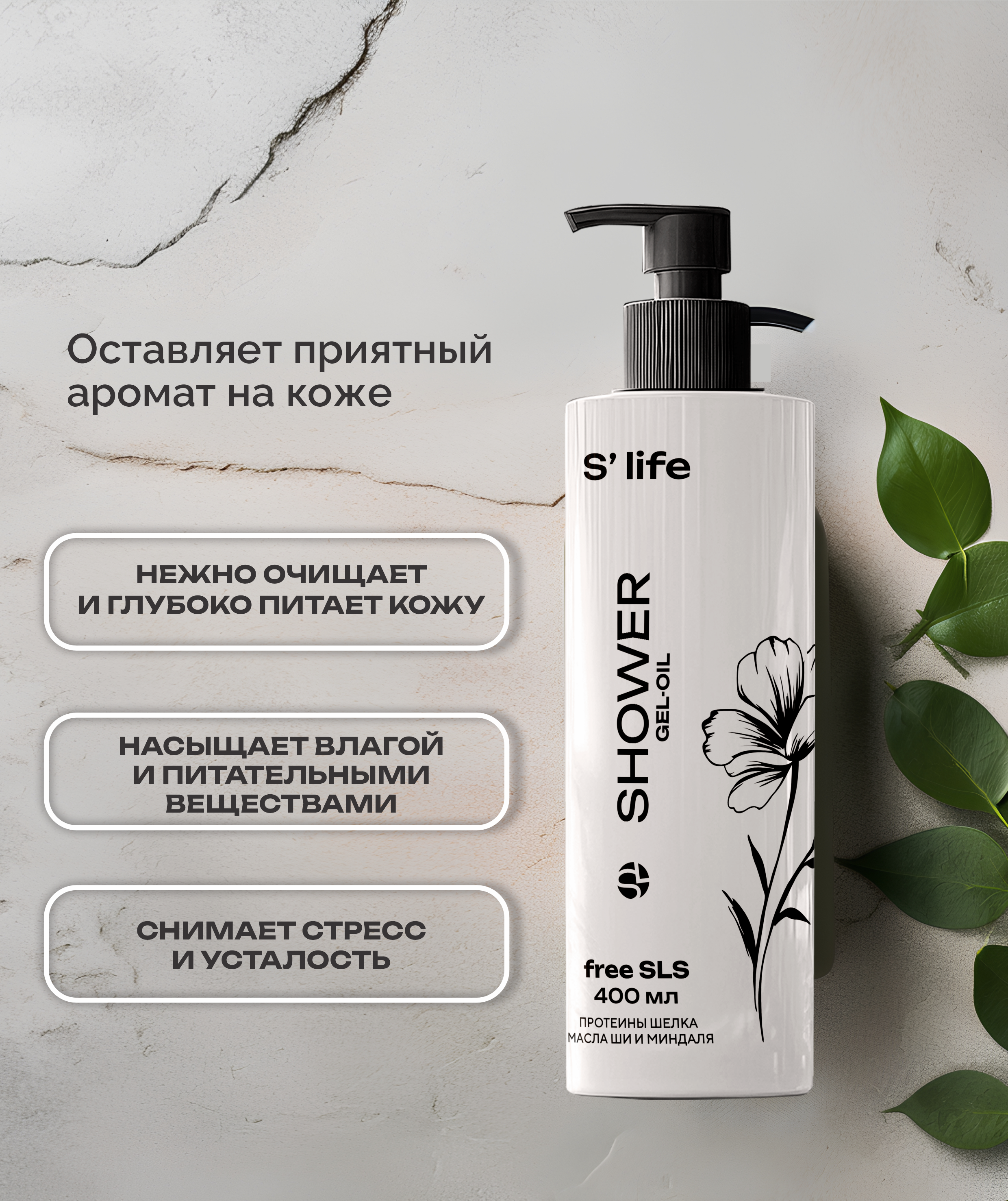 Экстра питательное гель-масло для душа S’life нежно очищает кожу, глубоко питает, насыщает её влагой и питательными веществами. При нанесении на влажное тело или губку при контакте с водой превращается в шёлковую пену.  Снимает стресс и усталость, оставляет на коже приятный аромат. В результате регулярного применения, кожа становится нежной, бархатистой, и увлажненной.