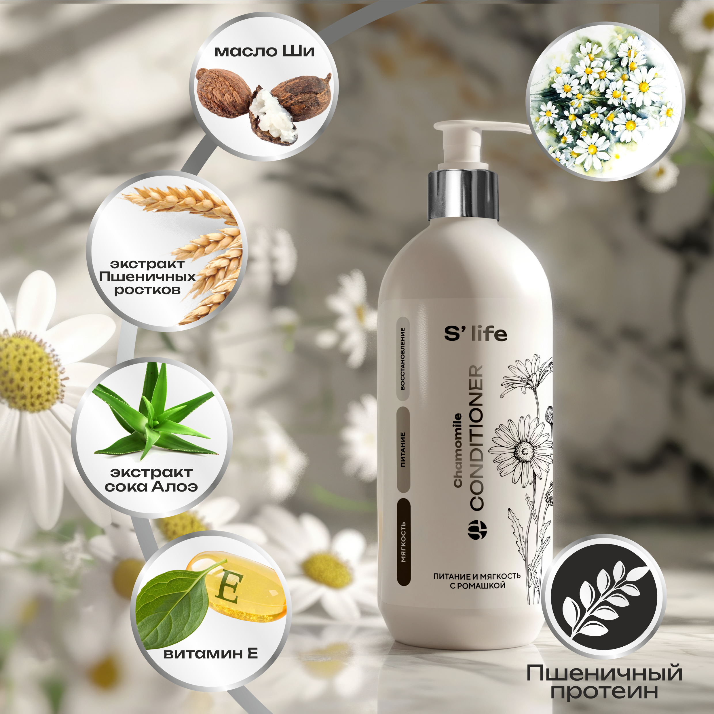 НАТУРАЛЬНЫЙ КОНДИЦИОНЕР ДЛЯ ВСЕХ ТИПОВ ВОЛОС С ЭКСТРАКТОМ РОМАШКИ
