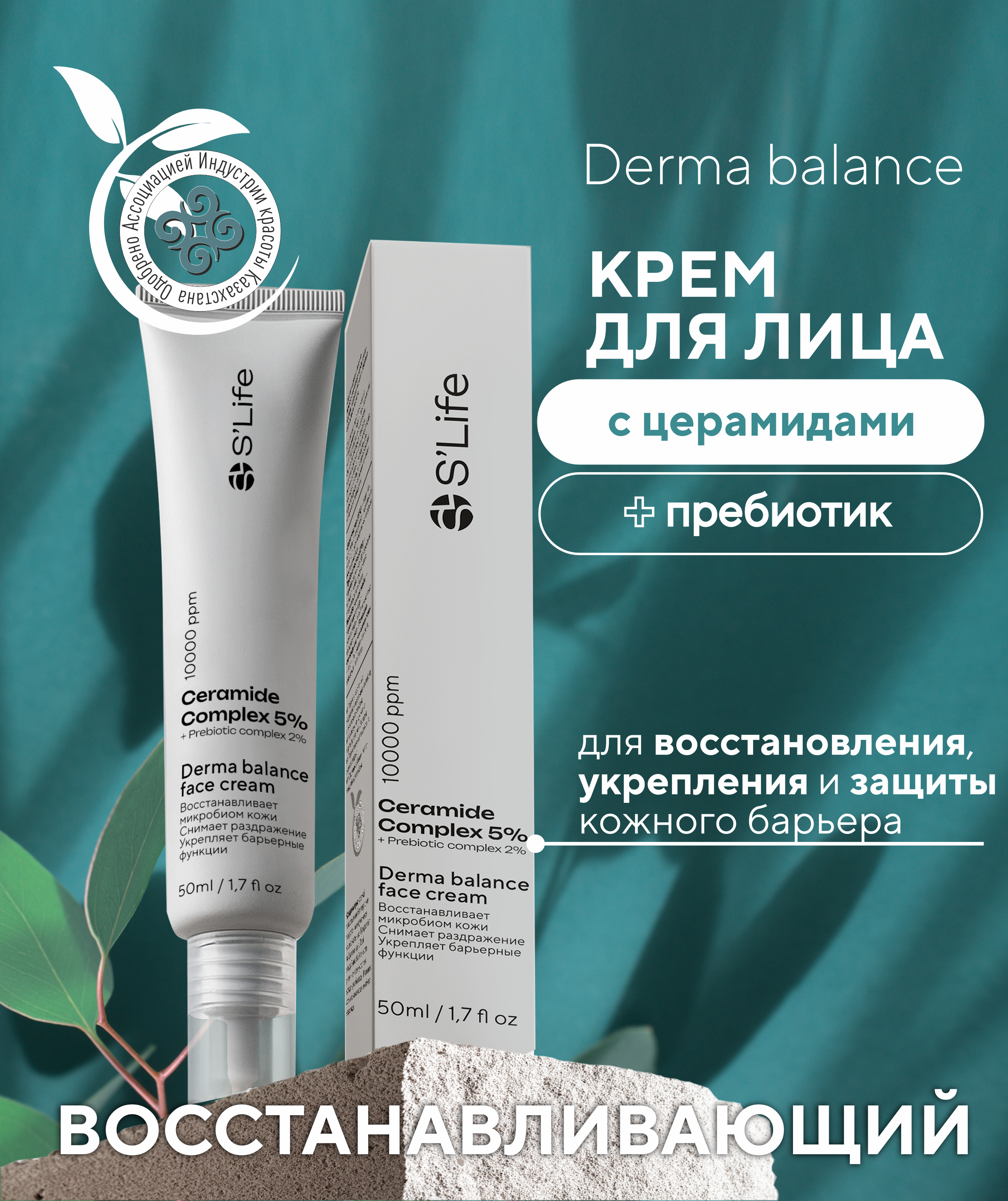 Церамидтер және пребиотиктер қосылған қалпына келтіретін бетке арналған крем