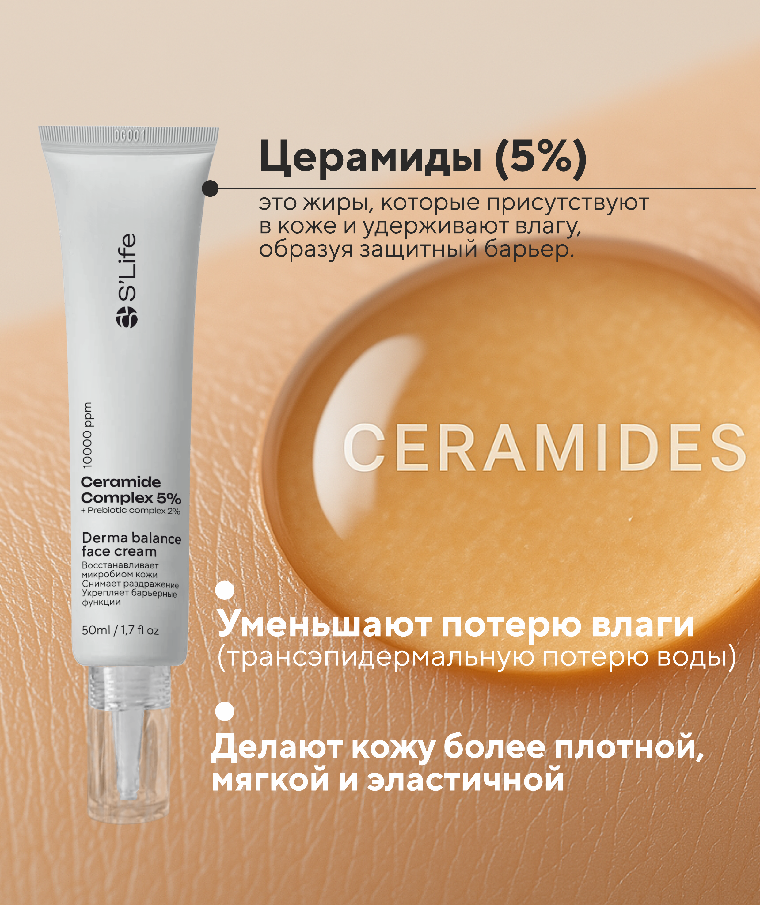 Церамидтер (5%) — терінің қорғаныс кедергісін қалпына келтіріп, ылғалдың жоғалуын болдырмайды.