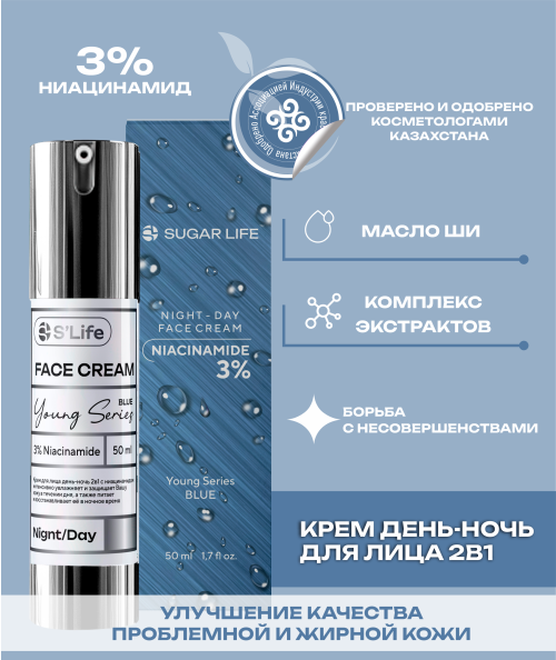 Ночной Крем-гель для лица Sugar Life от Young Series BLUE с Азелаиновой кислотой - это мощный...
